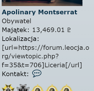 Leocjo zapłać! 👏🙂Helwetyk Romański pisze: ↑23 sty 2022, 23:13Załatwione. Wtyczką. Matko Prokrastynacjo, zapomniałem już, jakie szablony phpBB są rakowe.Franklin Garamond pisze: ↑23 sty 2022, 14:04Można przecież pole strona www połączyć z polem lokalizacja w szablonie? po co wtyczka?
